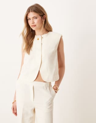 ASOS DESIGN - Hvid habitvest med høj hals i hørblanding i firkantet pasform - Del af sæt