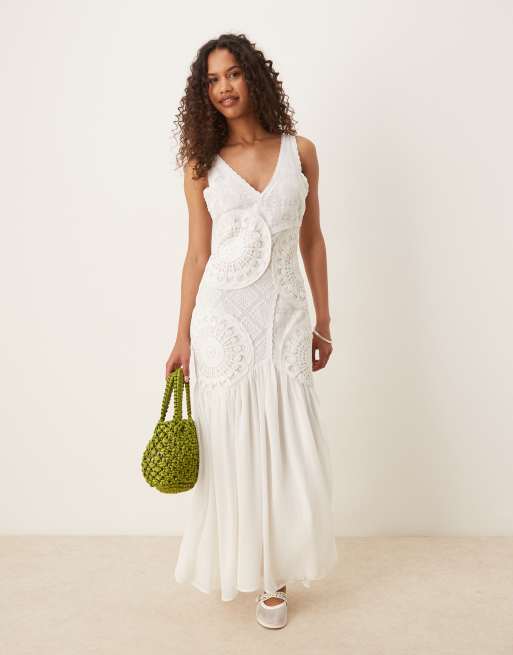ASOS DESIGN - Hvid hæklet maxikjole med V-hals og blonder
