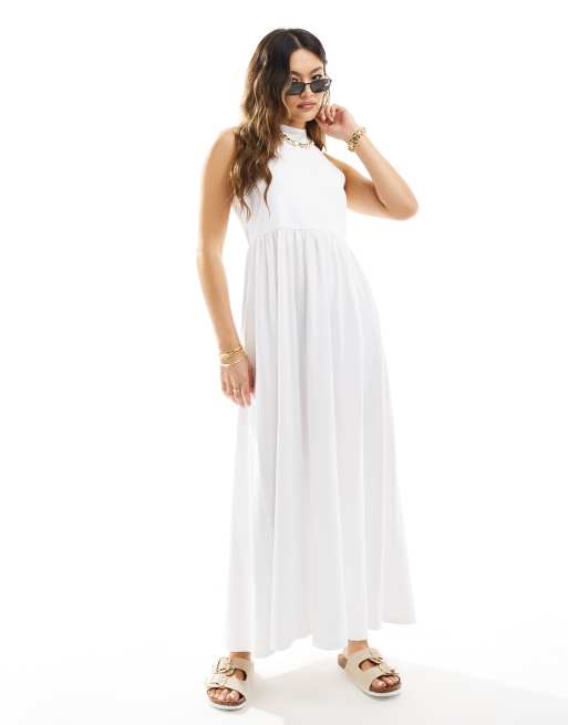 ASOS DESIGN - Hvid maxi-sundress med lav ryg og halterneck
