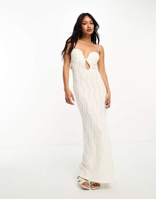ASOS DESIGN - Hvid maxikjole med perlekant og blonder