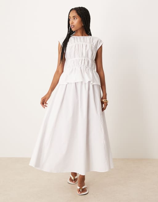 ASOS DESIGN - Hvid maxikjole med rynkede paneler