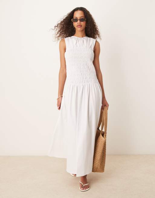 ASOS DESIGN - Hvid maxikjole med smocksyninger i taljen