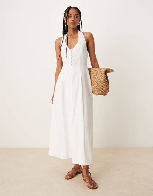 ASOS DESIGN - Hvid midikjole med halterneck og kilekant