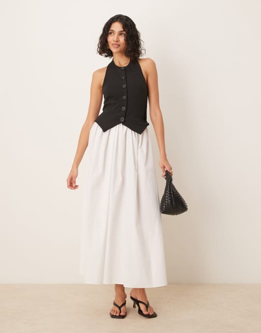 ASOS DESIGN - Hvid midikjole med sort habitvestedetalje