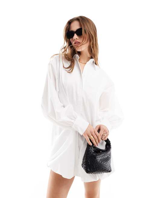 ASOS DESIGN - Hvid mini-skjortekjole med boblekant