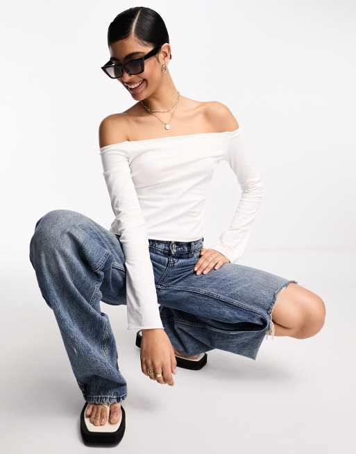 ASOS DESIGN - Hvid offshoulder-overdel med lange ærmer