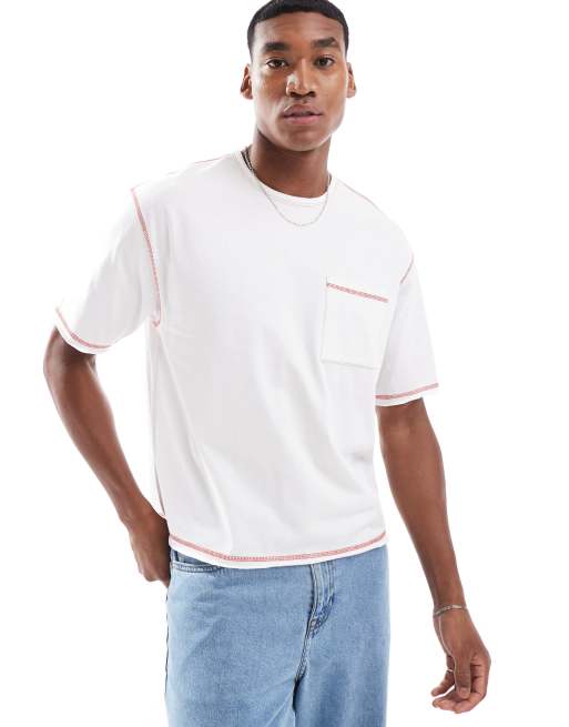 ASOS DESIGN - Hvid og afslappet T-shirt med firkantet pasform og syninger i kontrastfarve