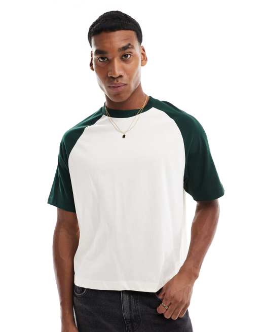 ASOS DESIGN - Hvid og grøn og afslappet raglan-t-shirt i firkantet snit