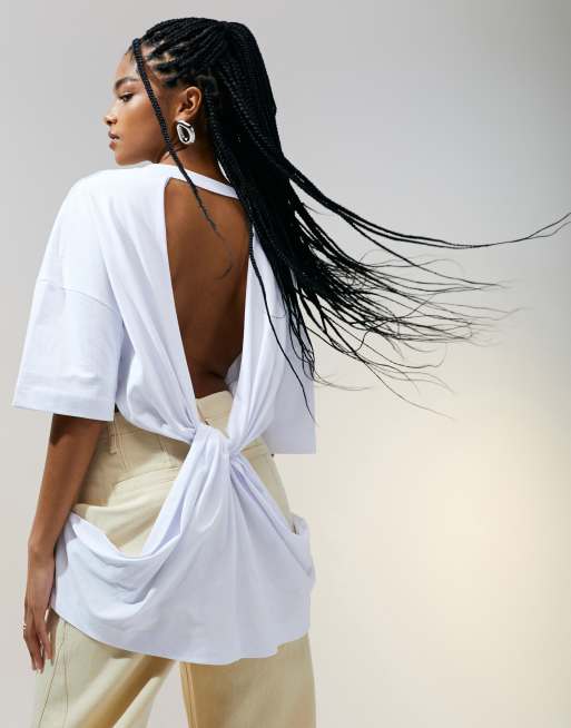 ASOS DESIGN - Hvid og kortærmet T-shirt med snoet detalje på ryggen