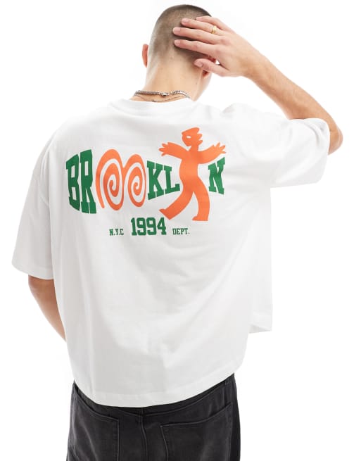 ASOS DESIGN - Hvid og oversized T-shirt med firkantet pasform og "Brooklyn"-grafik