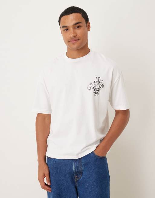 ASOS DESIGN - Hvid og oversized T-shirt med firkantet pasform samt blomstergrafik på brystet