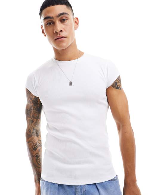 ASOS DESIGN - Hvid og tætsiddende T-shirt med små ærmer