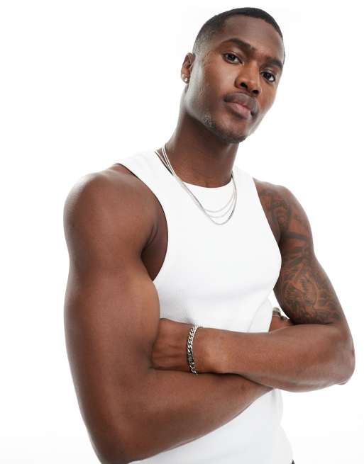 ASOS DESIGN - Hvid og tætsiddende top med racerryg og høj hals