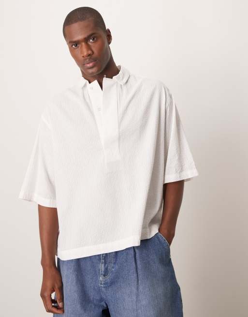 ASOS DESIGN - Hvid oversized overhead-skjorte medhalvlange ærmer i bæk-og-bølge-stof i firkantet pasform