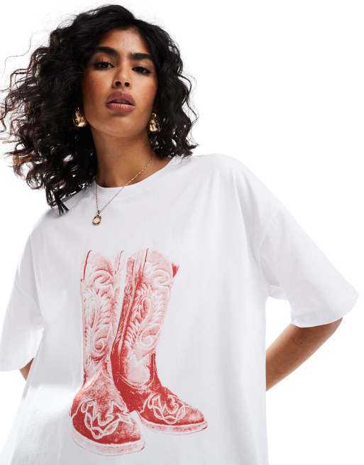 ASOS DESIGN - Hvid oversized T-shirt med cowboystøvle-grafik