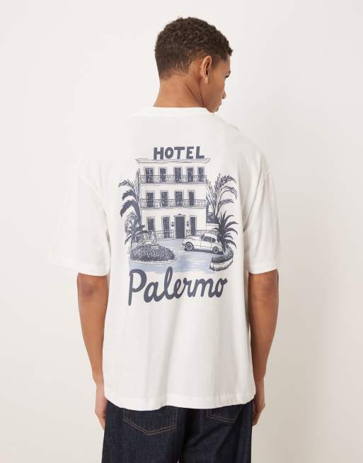 ASOS DESIGN - Hvid oversized T-shirt med Hotel Palermo-print
