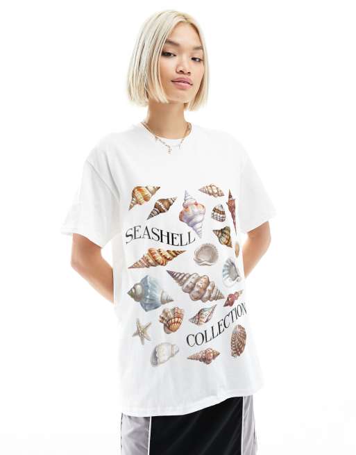 ASOS DESIGN - Hvid oversized T-shirt med muslingegrafik