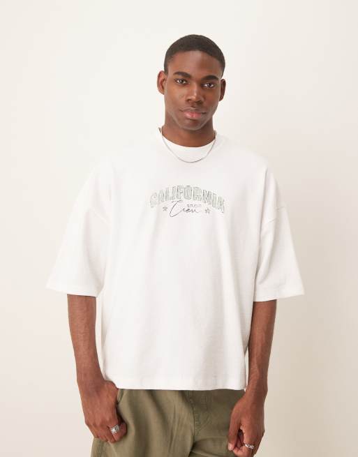 ASOS DESIGN - Hvid oversized T-shirt med print i firkantet pasform