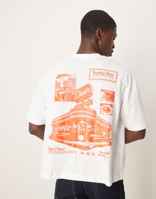 ASOS DESIGN - Hvid oversized T-shirt med restaurantgrafik