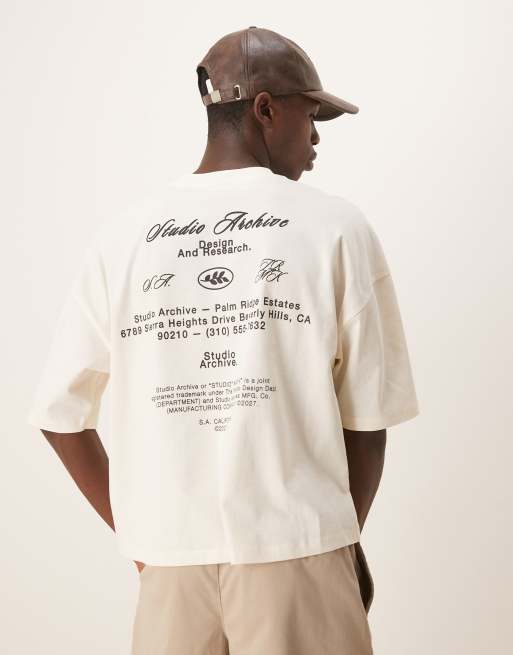ASOS DESIGN - Hvid oversized T-shirt med sænkede skuldre og print på ryggen