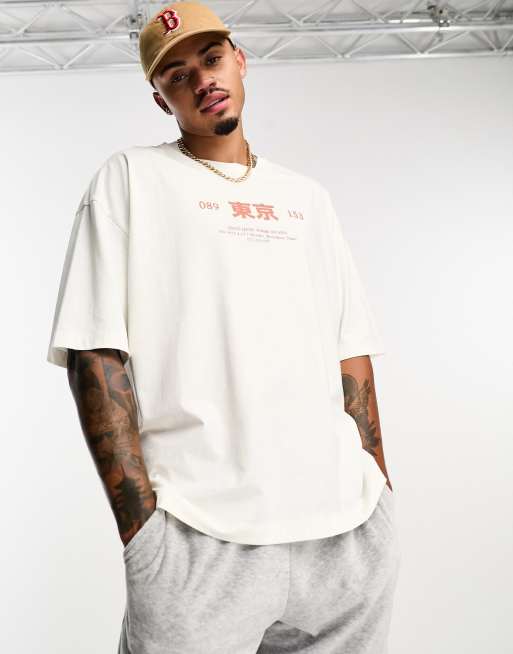 ASOS DESIGN - Hvid oversized t-shirt med tekstprint på brystet