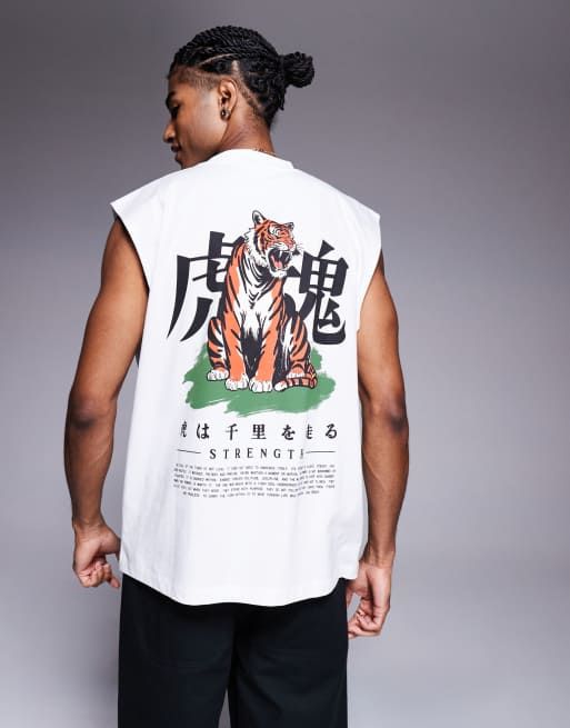 ASOS DESIGN - Hvid oversized tanktop med souvenirgrafik
