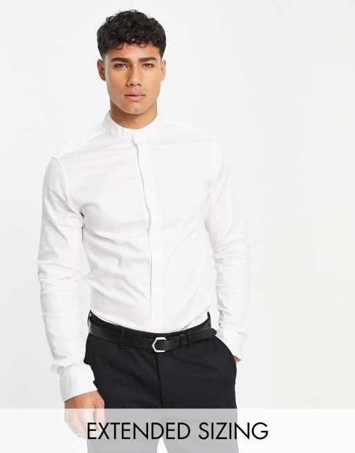 ASOS DESIGN - Hvid skinny-skjorte med bred kinakrave i satin