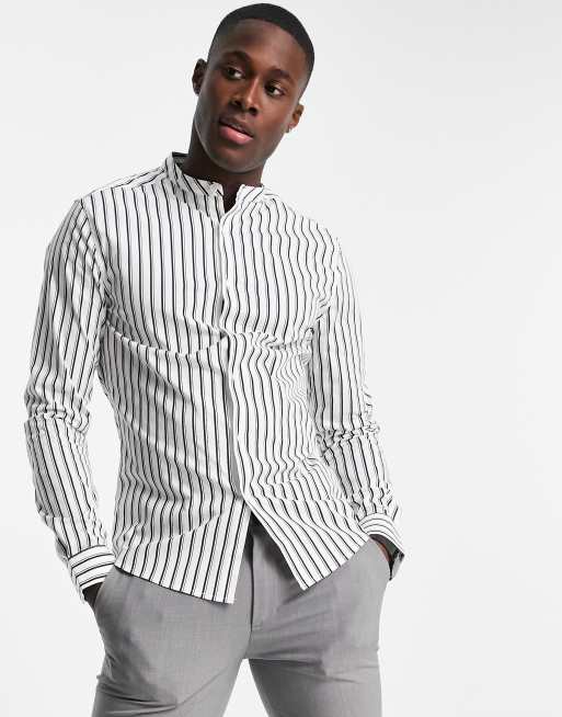 ASOS DESIGN - Hvid skjorte med grandad-krave og smalle striber