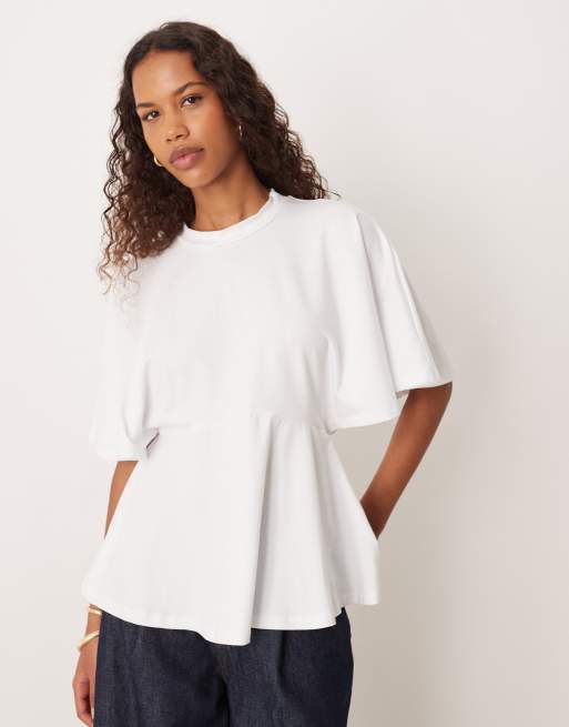 ASOS DESIGN - Hvid T-shirt med peplumkant og engleærmer