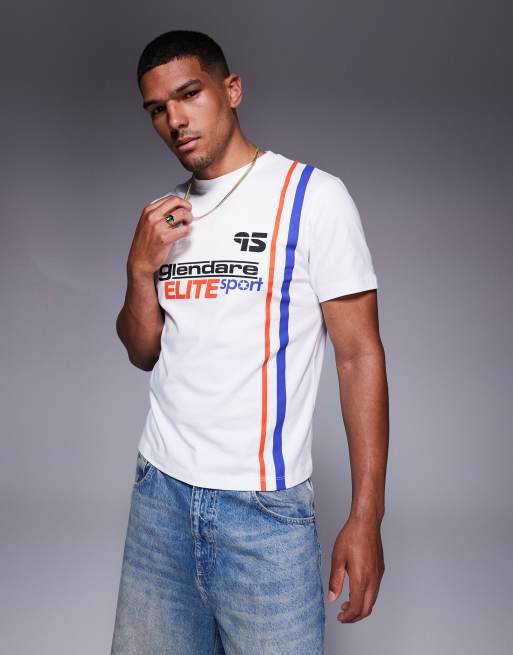 ASOS DESIGN - Hvid T-shirt med sportsgrafik i firkantet pasform