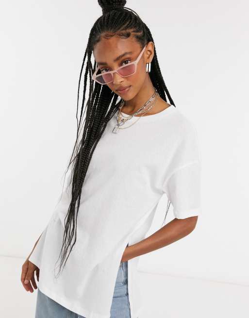 ASOS DESIGN - Hvid tekstureret longline T-shirt med side-slidser