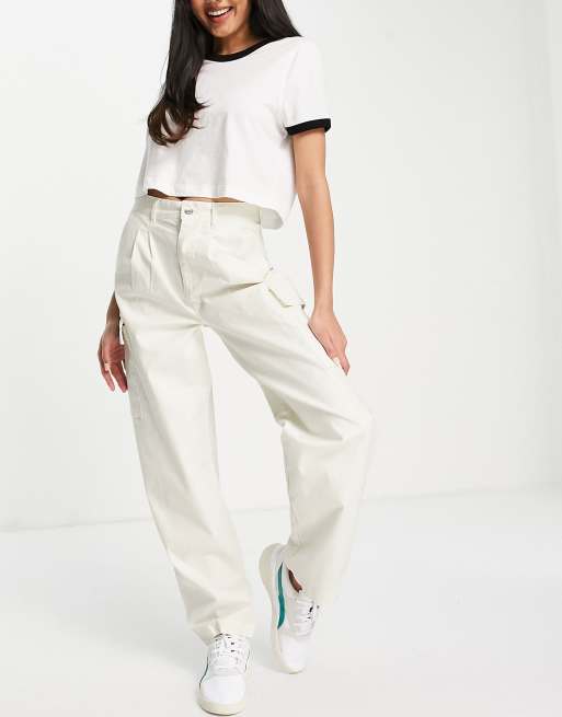 ASOS DESIGN - Hvide chinos med cargolommer og plisseret front