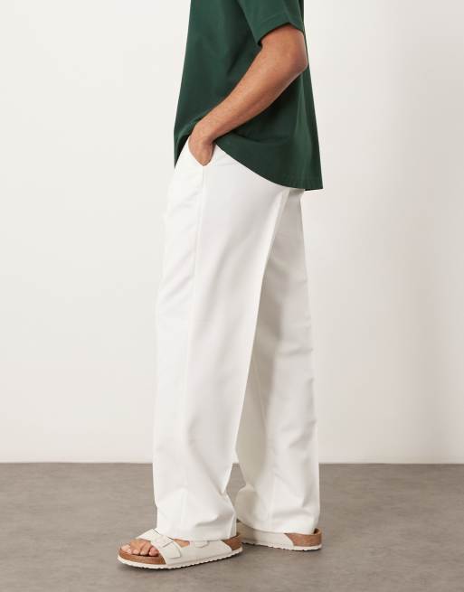 ASOS DESIGN - Hvide elegante bukser med vide ben og plisseringer foran