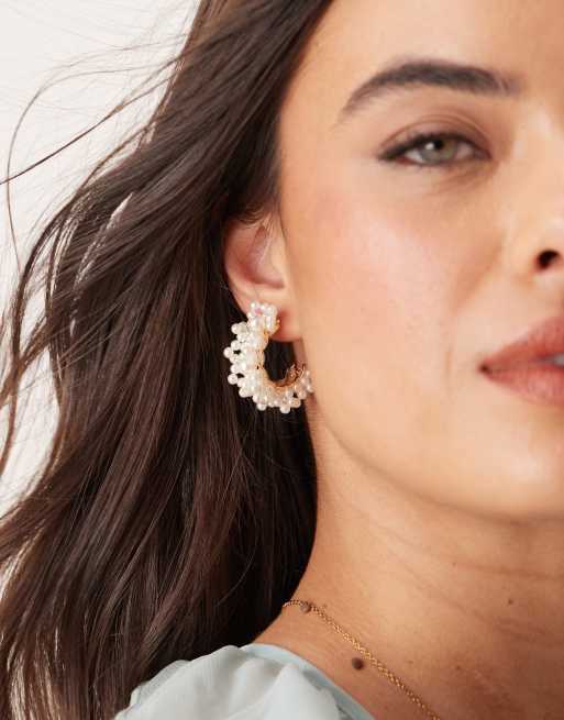 ASOS DESIGN - Hvide hoop-øreringe med imiterede perler