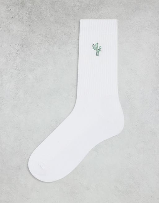 ASOS DESIGN - Hvide sokker med kaktusbroderi