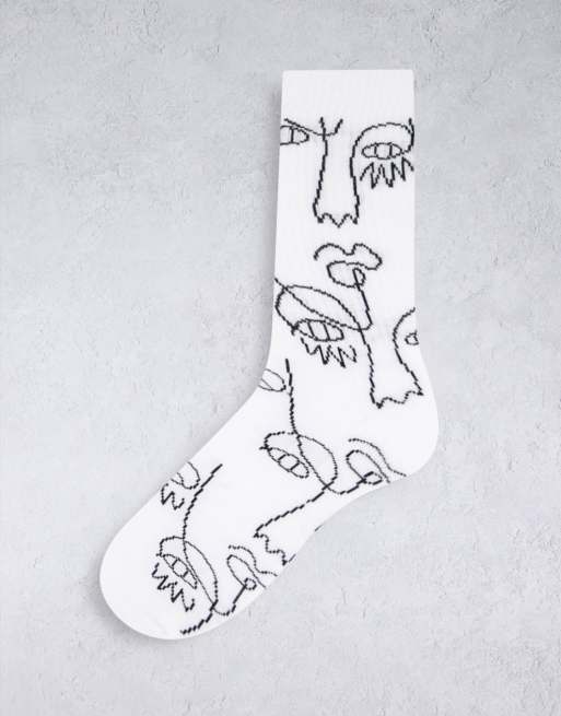 ASOS DESIGN - Hvide sportssokker med ansigtsprint