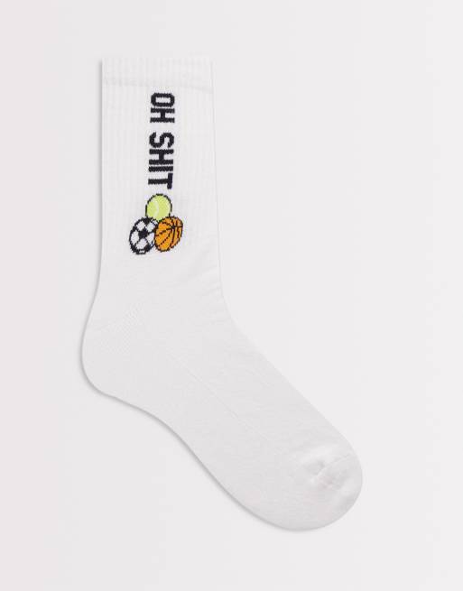ASOS DESIGN - Hvide sportssokker med bandeords- og smileymotiv