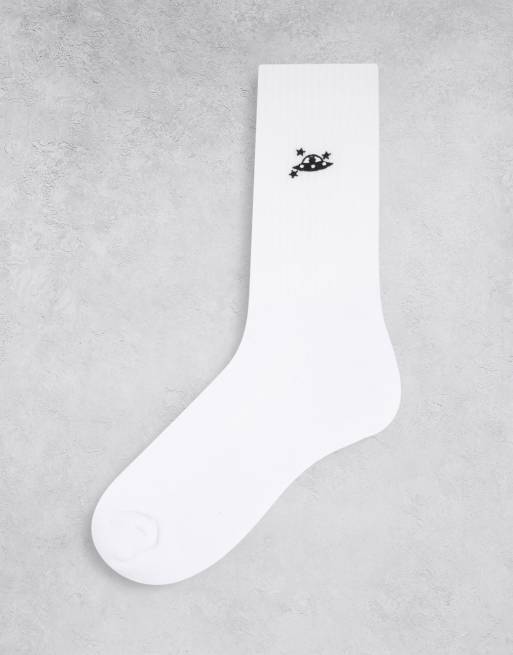 ASOS DESIGN - Hvide sportssokker med rumskibsbroderi