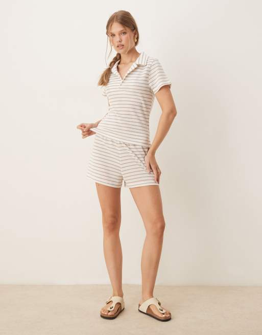 ASOS DESIGN - Hvide strikkede shorts med striber - Del af sæt