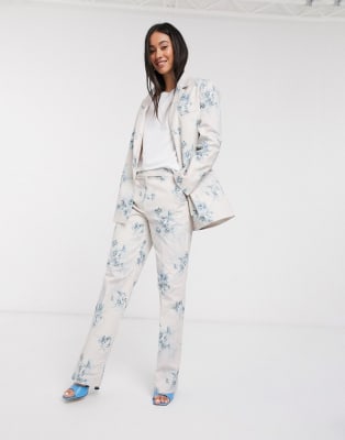 ASOS DESIGN - Hvidt dad-suit med blomsterprint