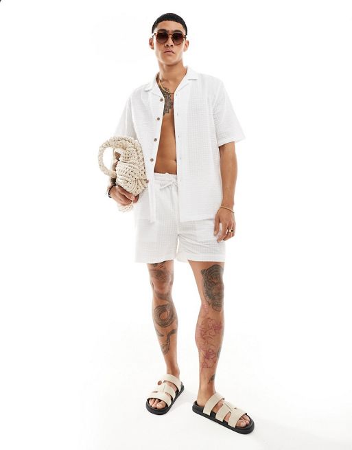ASOS DESIGN - Hvidt sæt med bæk-og-bølge-tekstur