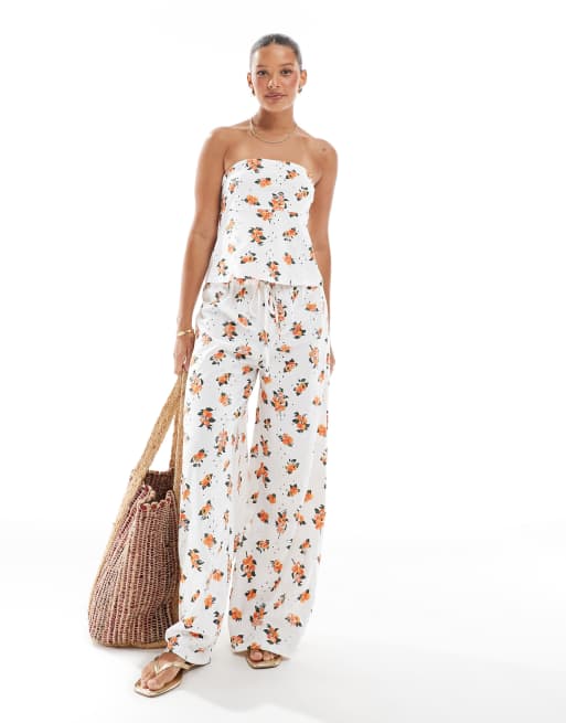 ASOS DESIGN - Hvidt sæt med sløjfedetalje og orange print