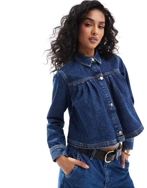 ASOS DESIGN - Indigoblå og plisseret denimskjorte