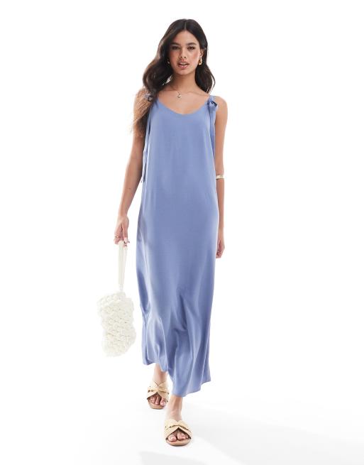 ASOS DESIGN - Isblå cami-midikjole med bindedetalje i cupro