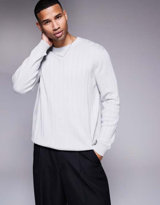 ASOS DESIGN - Isgrå og afslappet trøje i strik med vide ribber