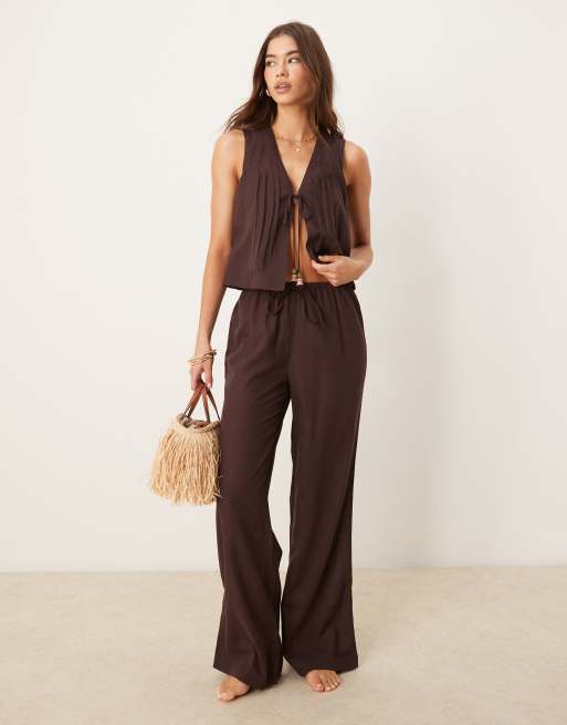 ASOS DESIGN - Ivy - Brunt strandsæt i hørblanding