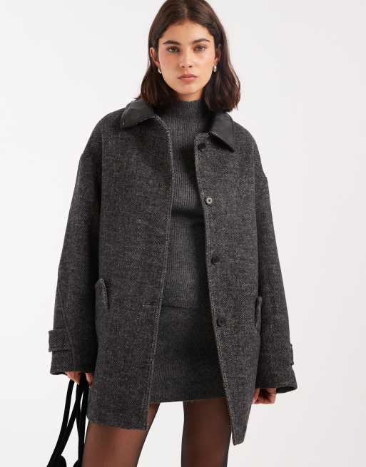 ASOS DESIGN - Jakke i uldblanding med sildebensmønster samt tekstur og krave