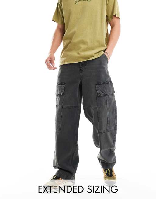ASOS DESIGN - Jeans med løs pasform og cargolommer i forvasket sort