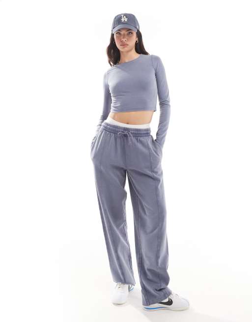 ASOS DESIGN - Joggingbukser med lige ben i vasket indigoblå