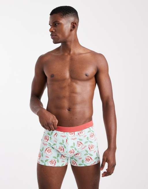 ASOS DESIGN - Jul - Blå boksershorts med retro julemandsprint